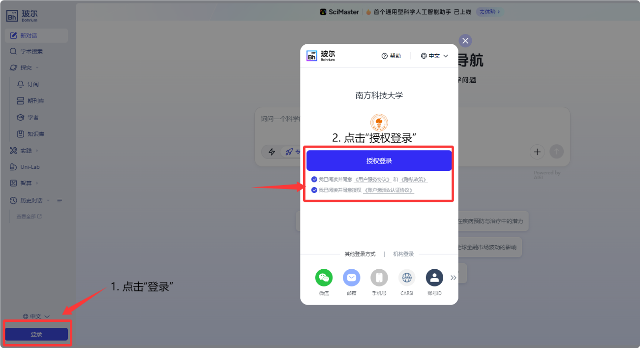 1、点击网页左下角“登录”,勾选同意条款,点击“授权登录”:
