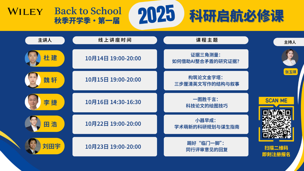 直播时间为周四15:00-16:00,欢迎您带着检索或科研中遇到的问题,我们将现场解答;观看直播还有机会获得幸运礼品!通过下方二维码即可注册并观看直播。